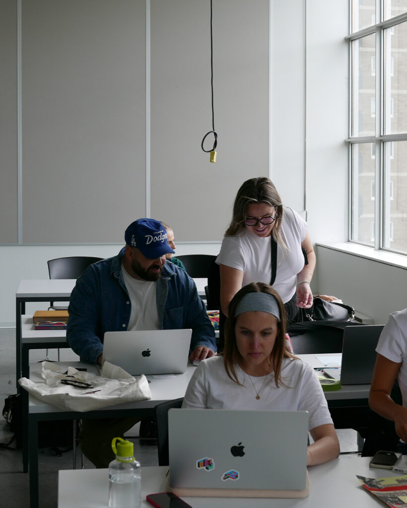 Dans le cadre de FORUM, Hypercodex proposait une série d’ateliers d’une journée, dont celui mené par Martha, le studio fondé par Ariane Leblanc et Guillaume Lavallée. L’activité invitait les participant·es à explorer la complémentarité entre gestes manuels et interventions numériques. Par binômes, ils et elles ont répondu à l’une des trois commandes fictives proposées, en alternant techniques analogiques et outils digitaux. Les projets finaux, nés de ce dialogue à deux voix, ont démontré toute la richesse d’une création partagée.