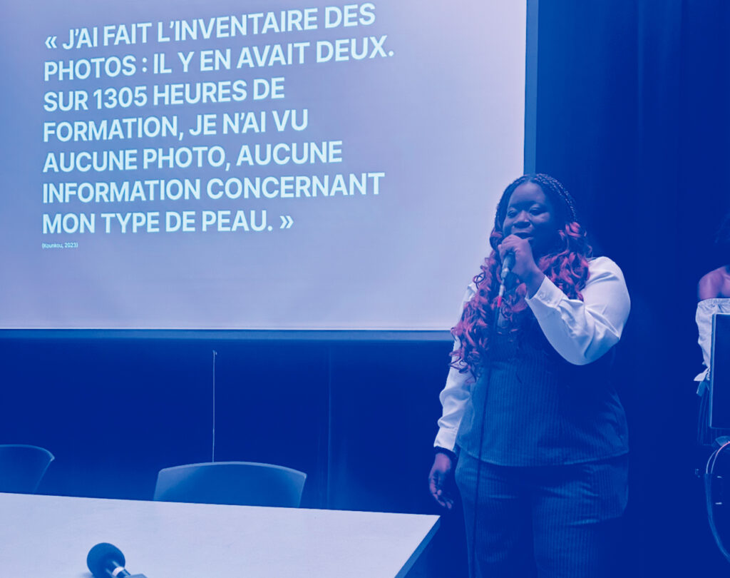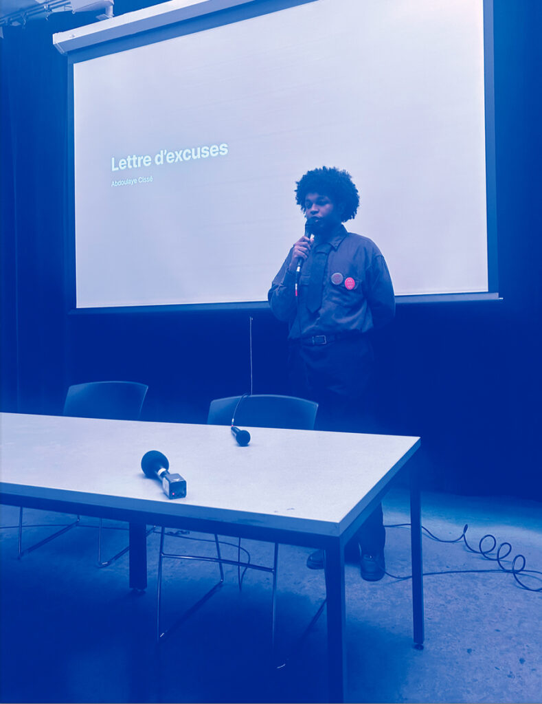 Dans le prolongement des activités du laboratoire TAO et des recherches menées autour du projet Hypercodex, l’événement L’expérience noire en design a été conçu comme un dispositif collectif mêlant communication visuelle, fabrication imprimée et organisation d’un espace de rencontre. Pensé comme un moment de visibilité et de transmission, le projet a réuni étudiant·e·s, futur·es étudiant·es , professeur·e·s et professionnel·le·s autour de pratiques issues des communautés noires dans le champ du design. L’événement, organisé par Marly Jean-Noël et Amandine Alessandra soutenues par la communauté de l’école et des acteurices de l’industrie, a pris la forme de conférences, d’une exposition et d’un moment d’échange convivial entre les participant·es du projet, autant issu·es du public que de l’organisation et des professionnel·les qui soutenaient le projet.